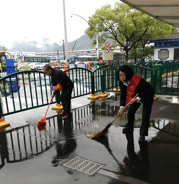 由于連日的陰雨,高鐵站發(fā)車區(qū)域地勢比周邊地勢低洼,有的地方積水嚴重,旅客上車非常的不方便。 為給旅客提供干凈整潔的環(huán)境,高鐵站工作人員利用發(fā)車空閑時間,及時清掃發(fā)車區(qū)域的積水,讓旅客來得開心,走得順心,身體力行實踐流動之家“將需要給我,把滿意給您”的服務(wù)宗旨。