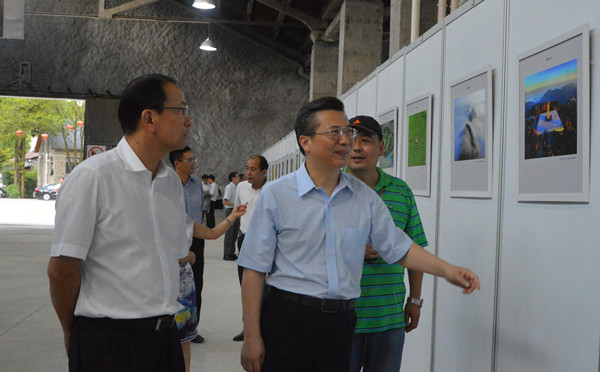 考察中,王永康實(shí)地參觀走訪了幸福谷品牌管理公司、創(chuàng)客空間等入園企業(yè),并饒有興趣的觀看了正在文創(chuàng)園8號樓舉辦的“‘2016?航拍麗水’百幅攝影作品展”??吹揭环仁煜び直陡行迈r的攝影作品,王永康異常高興,還不時(shí)的和市委書記史濟(jì)錫進(jìn)行交流。