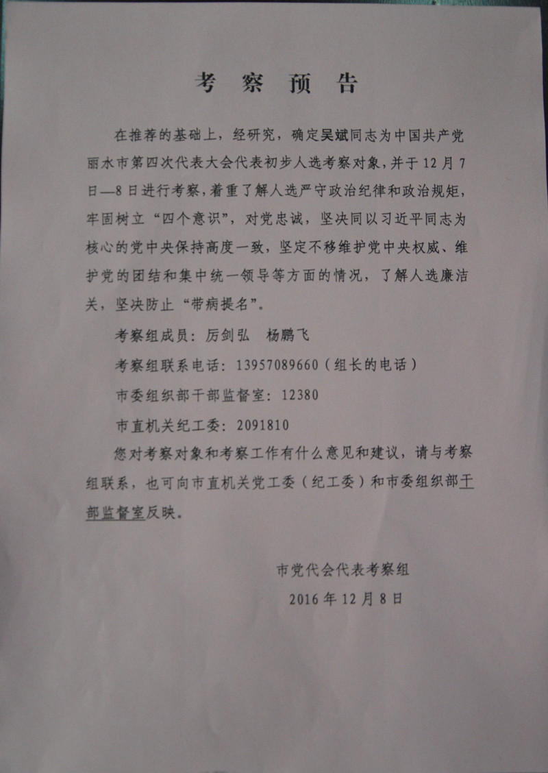 蓮都區(qū)人大代表候選人初步人選考察預(yù)告