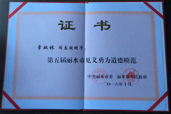 12月9日,蓮都區(qū)委區(qū)政府在蓮都劇場召開表彰會(huì),表彰蓮都區(qū)第五屆道德模范獲獎(jiǎng)?wù)?。麗汽集團(tuán)長運(yùn)公司駕駛員章雙林同志獲見義勇為道德模范受到表彰。 在10月31日,章雙林還獲得麗水市第五屆見義勇為道德模范,受到市委市政府表彰。