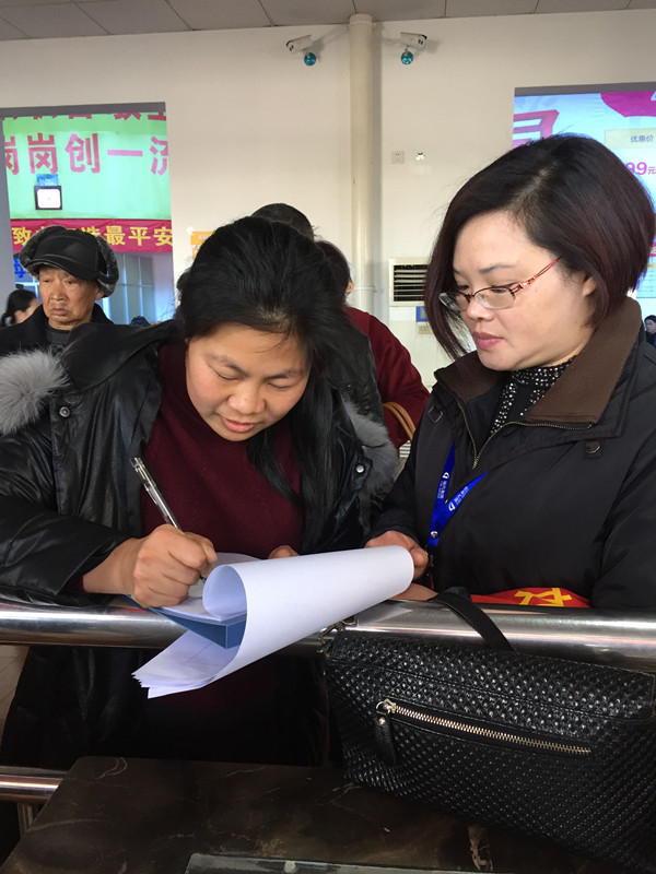 目前東站每天發(fā)送將近6000名旅客,這些服務(wù)工作全部由“流動(dòng)之家”服務(wù)班的14位姐妹花承擔(dān)。2016年12月,為了滿足兄弟單位的人員需求,本來人手嚴(yán)重不足的服務(wù)班,兩名組員被調(diào)到了新單位。到了2017年的1月,眼看春運(yùn)即將開始,又有兩名同事相繼辭職。由于事發(fā)突然,站里也不可能馬上配足人員。人手緊缺,對做好春運(yùn)服務(wù)工作是一大考驗(yàn)。面對困難,“流動(dòng)之家”服務(wù)班的姐妹們沒有氣餒,更沒有抱怨。“大家加把勁,先把春運(yùn)挺過去再說,再累也一定要讓旅客先順利回家”,這是服務(wù)班姐妹們在春運(yùn)期間最樸實(shí)的想法。最后,通過大家的相互協(xié)作,通過調(diào)整崗位配置,甚至放棄部分休息天等措施,硬是咬緊牙關(guān)堅(jiān)持了下來。在沒有請外援的情況下,使得高鐵配載點(diǎn)和東站服務(wù)臺(tái)的工作有條不紊地進(jìn)行,圓滿完成了春運(yùn)工作。