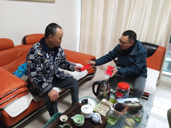 “我們?nèi)腋兄x公司領(lǐng)導(dǎo)和同事們的幫助”,3月24日,當(dāng)葉榮明接過工會(huì)主席王斌遞過來(lái)的捐款時(shí)哽咽著說。