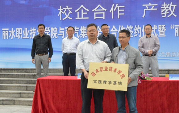 下午2時(shí)55分,麗汽集團(tuán)副總經(jīng)理廖翊堯從麗水職業(yè)技術(shù)學(xué)院副院長李升陽手中接過“麗水職業(yè)技術(shù)學(xué)院實(shí)踐教學(xué)基地”牌匾。