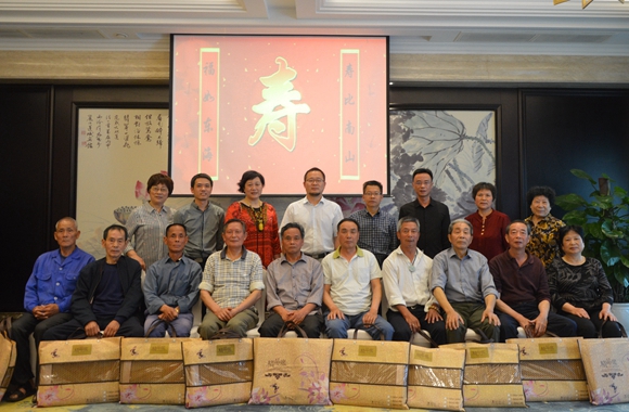 左邊是“福如東海”寫滿衷心祝福,右邊為“壽比南山”送上美好祝愿,遒勁的“壽”正居中央。 5月4日,麗汽集團(tuán)黨政工領(lǐng)導(dǎo)齊聚一堂,在蓮城賓館為70歲、80歲和90歲及以上老同志集體祝壽。