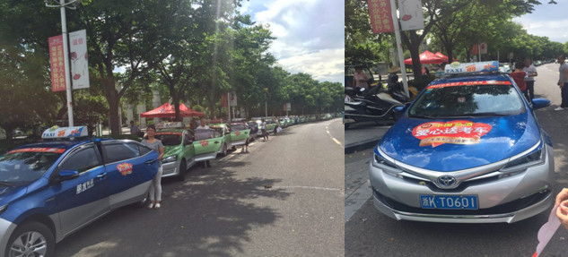 2017年度高考如火如荼,為服務(wù)好高考學(xué)子,長運(yùn)公司陽光文明車隊(duì)共投入輛15出租車投入愛心送考服務(wù)。及時(shí)露天的高溫,15位駕駛員也是堅(jiān)守自己的崗位,與高考學(xué)生一同進(jìn)退,為他們爭(zhēng)取寶貴的時(shí)間。