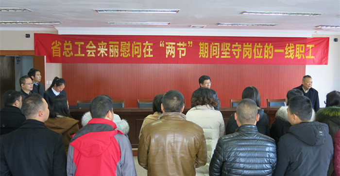 最后,省總工會董主席轉(zhuǎn)達(dá)省總對“兩節(jié)”期間堅守崗位的一線職工的親切慰問和節(jié)日祝福。