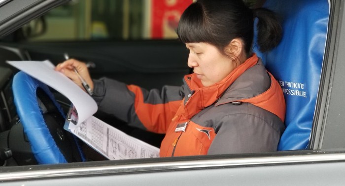 葉柳笑負責(zé)事故車接待。今年春節(jié)后,由于道路車流量大,事故車數(shù)量驟然變多,葉柳笑忙碌的身影在車間和接待處兩頭跑,連續(xù)的繁重工作她累病了。但她還是堅守在崗位上,直到售后經(jīng)理強制要求她回家休息,她也僅休息了一天。她說,大家都這么忙,我在家里真的是坐立不安啊。