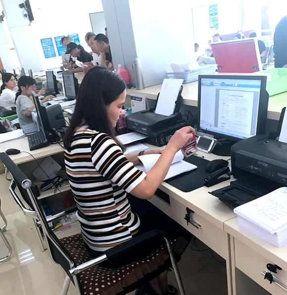 綜合業(yè)務(wù)部是安檢站車輛檢測流程開始和結(jié)束的關(guān)口部門,部門的9名員工中有8位是女同胞,擔負著安檢站所有直接面向客戶的服務(wù)。從檢測業(yè)務(wù)預(yù)約、受理到檢測收費、檢測審核出單,甚至新車燃料消耗量核查、檢測信息的上傳及行駛證合格標志的打印,無一不經(jīng)過她們之手。每天上班,她們是第一個開始工作的崗位,每天下班,她們要堅守到最后一筆業(yè)務(wù)完成。雖然來自不同的地方,但緣分讓她們齊聚在安檢站這個工作舞臺上,共同演繹了一段段敬業(yè)奉獻的感人故事。