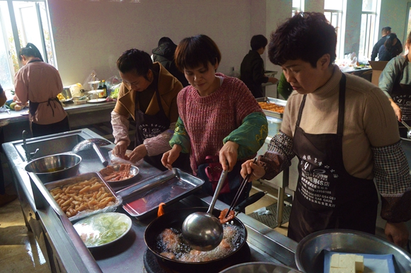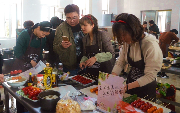 女同胞們有的揉面有的搓團(tuán)兒,有的掂勺有的擺盤,有的擺弄雕花,還有穿起了糖葫蘆串兒,為了團(tuán)隊(duì)的榮譽(yù),個(gè)個(gè)擼起?子加油干!