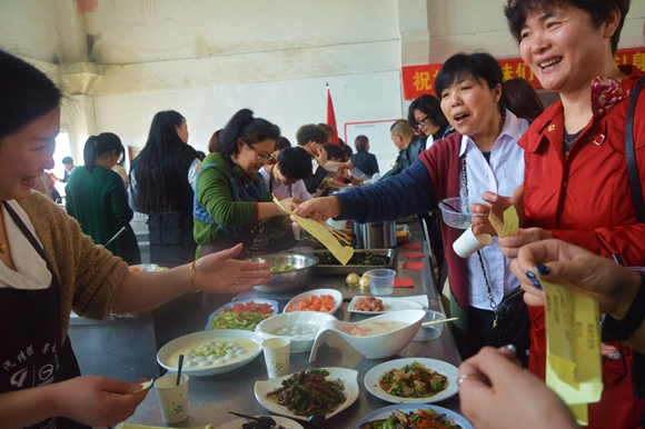 看熱鬧的男同胞們也閑不住了……紛紛打起了下手,出主意的、充當(dāng)收銀的……