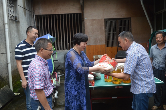 會后,集團公司黨委為村養(yǎng)老中心送去米、油等慰問品。