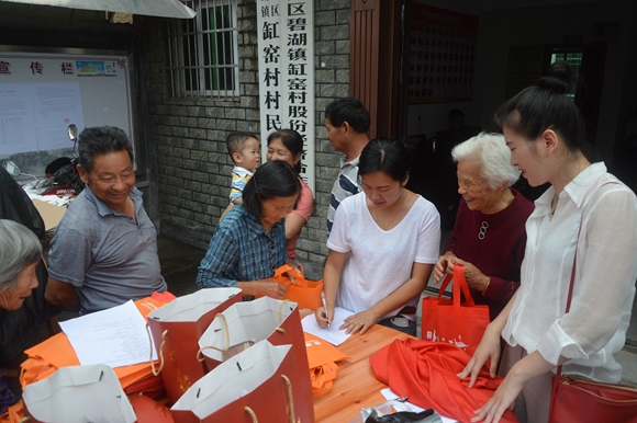 同時,參加調(diào)研的黨團員們還向村民發(fā)放了30余份調(diào)查問卷,并為村民送去了旅游產(chǎn)品、文化廣告、汽車銷售維修、民宿經(jīng)營培訓、駕培教育等現(xiàn)場咨詢服務。