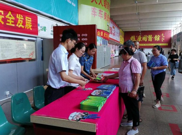 活動中,通過發(fā)放安全知識宣傳單、粘貼海報、咨詢服務等方式,為過往旅客、周邊店面承租戶、駕駛員、站務員等送上安全行車、用電安全、職業(yè)衛(wèi)生等安全知識及相關法律法規(guī)知識。