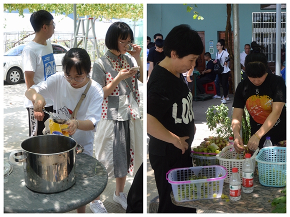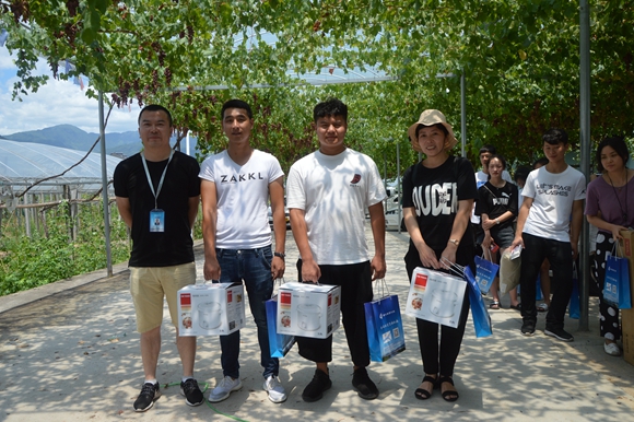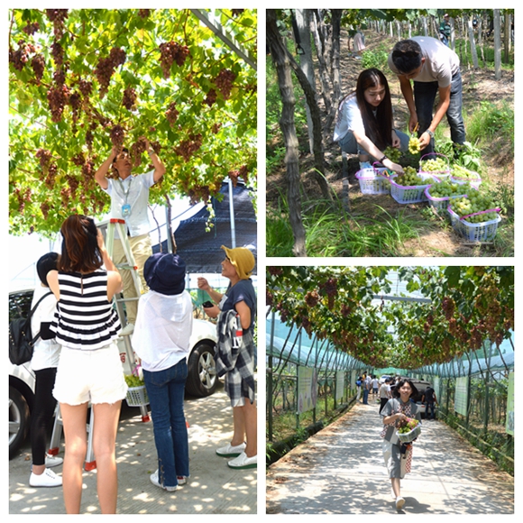 “這個(gè)好甜!” “我喜歡這個(gè)品種的味道!”學(xué)員們一到達(dá)葡萄園,工作人員們就端來了沏好的端午茶和剛采摘的新鮮葡萄……學(xué)員們迫不及待的品嘗起來。