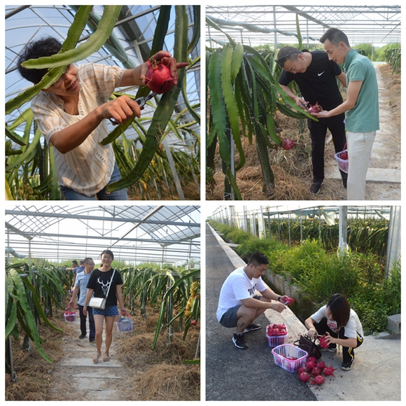 在缸窯村火龍果采摘基地,工作人員向大家介紹了基地火龍果的無(wú)公害種植模式和火龍果果肉、果皮以及花朵的食用價(jià)值。工會(huì)主席(組長(zhǎng))們也親自體驗(yàn)了一把火龍果的采摘??粗︻^紅艷誘人的果實(shí),大家臉上掛滿了的豐收喜悅。
