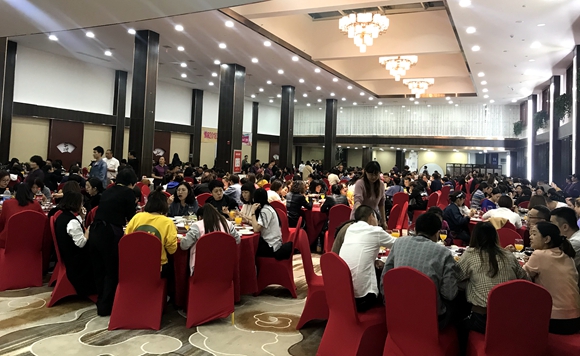本次訂貨會(huì)是九城宴會(huì)中心第一次承接如此大型活動(dòng)。用餐人數(shù)從原來(lái)預(yù)訂的600人增加到800人,全天不間斷12小時(shí)超長(zhǎng)接待服務(wù),要求每天菜品不重樣等,在現(xiàn)有工作人員人手不足的情況下,對(duì)公司接待能力是個(gè)巨大考驗(yàn)。為了提供最優(yōu)質(zhì)的服務(wù),保證本次訂貨會(huì)圓滿完成,公司就此次活動(dòng)多次召開了專題會(huì)議,人員合理分工、菜品科學(xué)調(diào)整、賣場(chǎng)結(jié)合促銷,為期3天的訂貨會(huì)終于圓滿地畫上了句號(hào)。