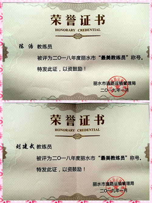 近日,麗水市道路運(yùn)輸管理局印發(fā)了《關(guān)于表彰2018年度“文明示范駕培學(xué)?!奔啊白蠲澜叹殹钡耐▓?bào)》,麗汽汽校在評(píng)選活動(dòng)中脫穎而出,順利通過(guò)評(píng)審組復(fù)評(píng),再次榮獲年度市級(jí)“文明示范駕培學(xué)?!睒s譽(yù)稱(chēng)號(hào),這也是我校連續(xù)六年榮獲此項(xiàng)殊榮。同時(shí),麗汽汽校的陳浩、劉建武兩位同志獲得2018年度麗水市“最美教練員”稱(chēng)號(hào)。