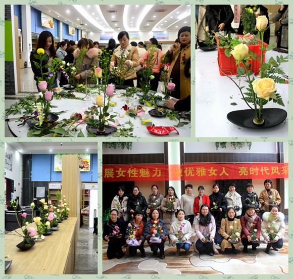 在插花分會場,麗水職業(yè)技術(shù)學(xué)院邱東萍副教授給大家講解插花藝術(shù)和技巧,特別教了時下流行的用劍山插花技巧。緊接著女工們進(jìn)行插花實踐操作,分組進(jìn)行插花比賽,只見女工們使出渾身解數(shù),在美麗的鮮花面前,個個都心靈手巧,她們有用劍山、有用花泥插花,很快一盆盆靚麗的鮮花就得以呈現(xiàn)。邱東萍教授和助手們選出好的作品給大家一一作了點評。