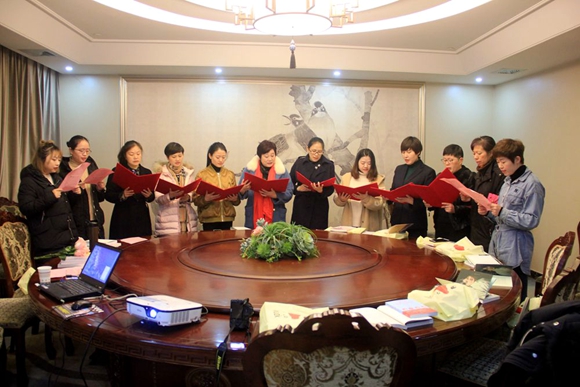 在閱讀分會場,只見女工們圍坐在一起,開啟一場閱讀的盛宴?!罢阄髂细锩瘛庇懒鱾?,閱讀者們首先向革命先輩們致敬,由工會主席呂麗君帶領(lǐng)大家一起朗讀了《弘揚(yáng)“浙西南革命精神” 聚焦聚力“麗水之干”》。緊接著以擊鼓傳花的形式,鼓?;湔l家,由誰進(jìn)行朗讀。朗讀者們朗讀中有婉轉(zhuǎn)、有昂揚(yáng),個個聲情并茂。朗讀中,集團(tuán)公司黨委書記、董事長葉茂、常務(wù)副經(jīng)理總何赤詮、副總經(jīng)理廖翊堯也加入了朗讀行列。根據(jù)個人表現(xiàn),評選出了“誦讀女王”。