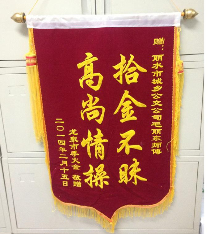 這個包可好點“金貴”,包里裝著萬元現(xiàn)金和其他各種證件,這一萬多塊錢是生小孩剩下的錢還有親戚朋友們坐月子送來的賀禮和給孩子的壓歲錢。原來,章女士是雅溪人,夫家在龍泉。由于新生兒黃疸偏高,要經(jīng)常復查,為了圖個方便,章女士就在娘家坐月子。出了月子,孩子的黃疸也正常了,章女士準備去婦保院做完最后一次復檢就回龍泉了。卻不曾想由于自己的粗心把包落在了公交車上。章女士說:“包里不僅放著一萬多塊錢,還有戶口本、身份證、小孩的出生證明等證件,由于戶口本、醫(yī)學證明這些很難補辦,真把我急壞了。車上乘客那么多,肯定找不回來了,心里瞬間涼透了?!?br/> 僅僅過了20多分鐘,章女士接到了城鄉(xiāng)公交公司的電話,核對完章女士的信息后,公司告知她可以取回她的包了。原來,剛走上崗位兩個月的公交車司機毛禮東師傅在發(fā)現(xiàn)章女士丟失的包后,第一時間與公司,通過包里章女士大女兒的家校聯(lián)系卡,找到了章女士的手機號碼。聽到這個消息,章女士頓時松了一口氣。