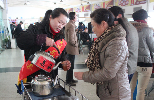 2月6日一大早,客運(yùn)西站“流動(dòng)之家”服務(wù)班的姐們?cè)缭缇蜏?zhǔn)備好一大壺?zé)狎v騰的姜茶,免費(fèi)送到候車(chē)的旅客手上,希望熱騰騰的姜茶能驅(qū)散早晚的寒意,讓旅客回家的旅程變的更加溫暖。